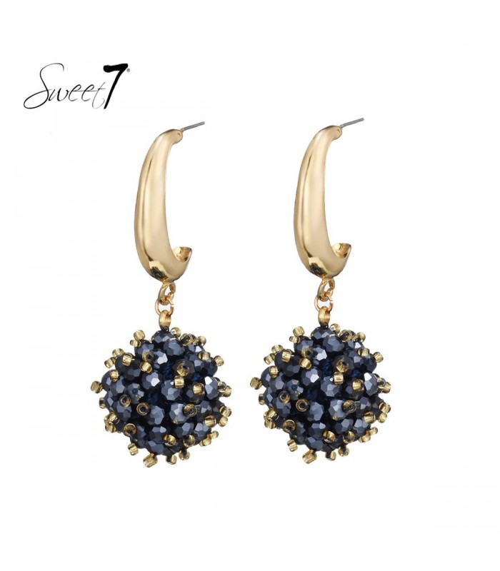 Goudkleurige oorhangers met blauwe glas kralen bol design.