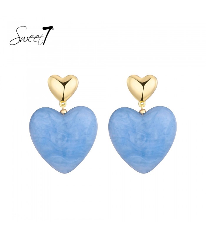 Deze oorbellen bewijzen van wel. Het zachte blauw van het hartvormige element straalt rust uit, terwijl de goudkleurige hartjes bovenaan een warme touch toevoegen. Perfect voor wie durft te kiezen voor romantiek met een twist. Een unieke combinatie van speelsheid en stijl.