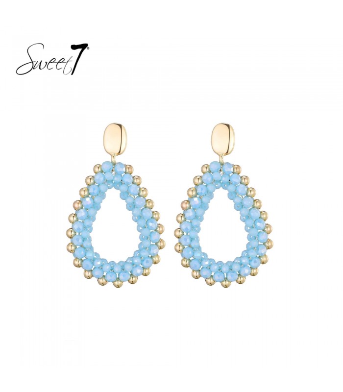 Frisse kleuren met een speelse twist. Wat als je een vleugje licht en lucht kon dragen? Deze oorbellen brengen dat gevoel tot leven. De druppelvormige contour is opgebouwd uit fijne lichtblauwe kralen, omlijst met goudkleurige accenten. Samen zorgen ze voor een sprankelend geheel dat elegantie en vrolijkheid moeiteloos combineert.