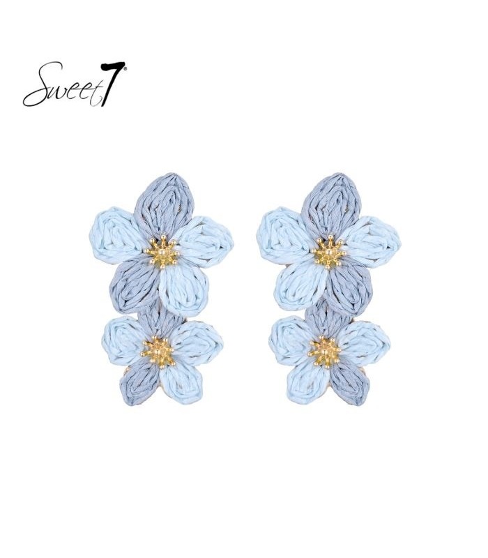 Oorbellen met romantische bloemenlook. Zoek je een oorbel die direct opvalt? Deze oorbellen met dubbele bloem in lichtblauw en grijsblauw geven elke outfit een frisse touch. De goudkleurige kern zorgt voor een chic accent. Perfect als statement oorbellen bij een zomerjurk of casual look.