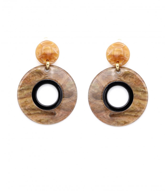 Oorclips met ronde vormen en aardetinten. Hoe combineer je comfort met stijl? Deze oorclips vallen op door hun speelse ronde vorm en natuurlijke kleuren. De mix van karamelbruin, zwart en marmerpatroon geeft een organisch maar krachtig effect, perfect voor een stijlvolle, eigentijdse look.