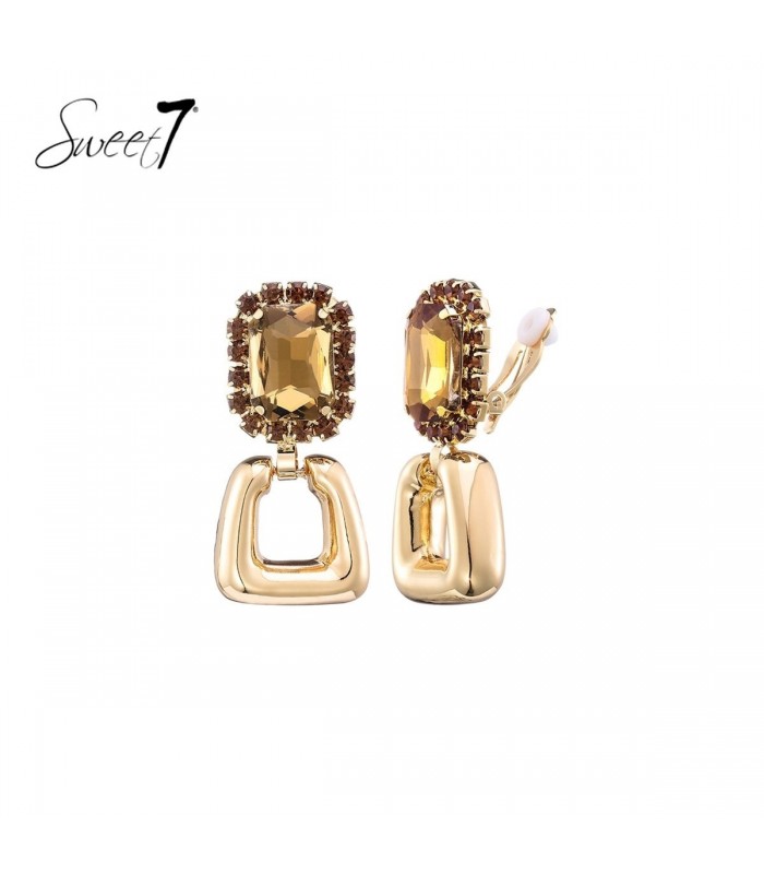 Oorclips met bruine rechthoekige steen en een goudkleurige hanger