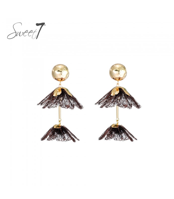 Wil je een oorbel die toch karakter toevoegt aan je look? Deze oorbellen combineren bruin, fijn geweven draad in twee lagen met glanzende goudkleurige elementen. De structuur oogt verfijnd en geeft beweging.. Een subtiel statement voor zowel overdag als s avonds. Stijlvolle balans tussen textuur en glans De gouden bolsluiting en tussenstuk zorgen voor een elegante finish, terwijl de bruine franjes luchtig vallen. Deze oorbellen geven elke outfit een modieuze update, of je nu kiest voor casual chic of avondstijl. Combineer met een blazer of maxi jurk voor extra effect.