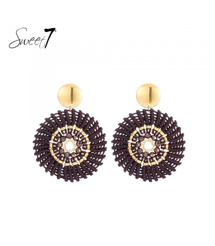 Hoe combineer je warmte met elegantie in een accessoire? Deze oorbellen brengen diepbruine draadstructuren samen met glanzende kralen en goudkleurige accenten in een verfijnd cirkelvormig ontwerp. Ze geven elke outfit een rijke, stijlvolle touch zonder te overheersen. Comfort met karakter De open geweven structuur maakt deze oorbellen licht en aangenaam om te dragen. De goudkleurige knop voegt een subtiele glans toe en zorgt voor een elegante afwerking. Perfect voor een diner, event of stijlvolle werkdag.