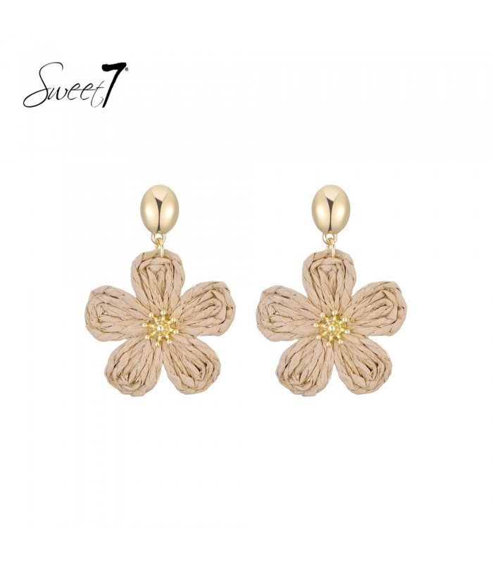 Oorbellen camel kleurig in bloem vorm van Raffia