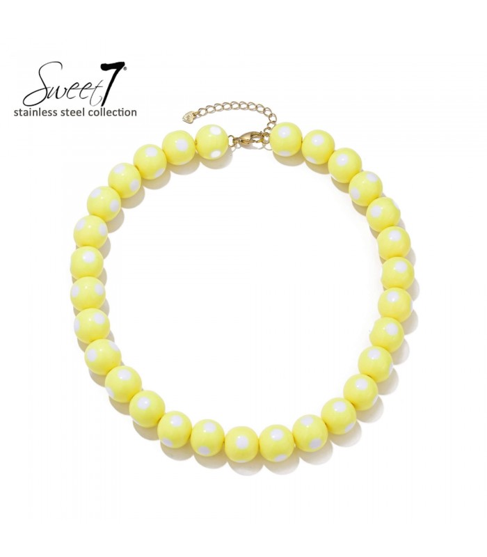 Zon in een sieraad. Hoe vang je een zonnige dag in een accessoire? Deze halsketting uit de Sweet7 collectie doet het met gemak. De glanzende, citroengele kralen brengen instant energie en vrolijkheid in je look. De kleur is fris en krachtig tegelijk perfect om je outfit licht en levendig te maken, ongeacht het seizoen.