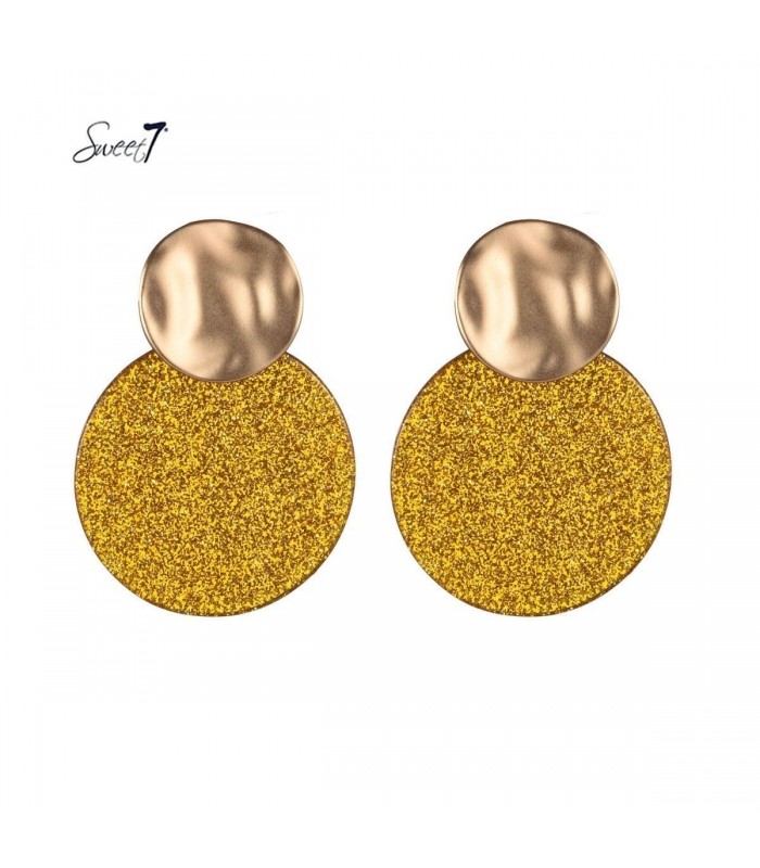 Gele oorhangers met een glinstering en een goudkleurig detail