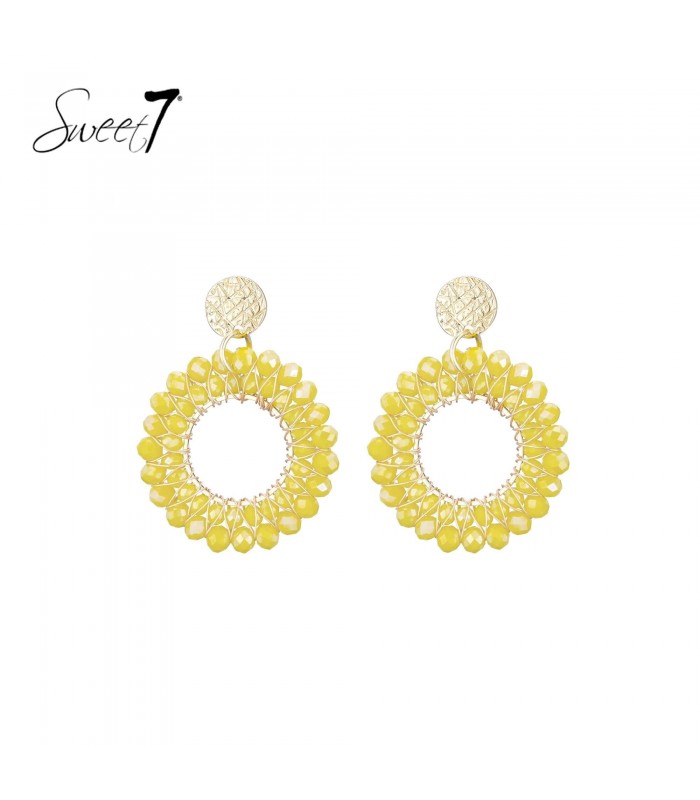 Wil je een oorbel die direct kleur geeft aan je look? Deze oorbellen met gele kralen in cirkelvorm zorgen voor een frisse, trendy uitstraling. De goudkleurige basis en glanzende beads maken deze statement oorbellen perfect voor een zomer outfit of festival look.