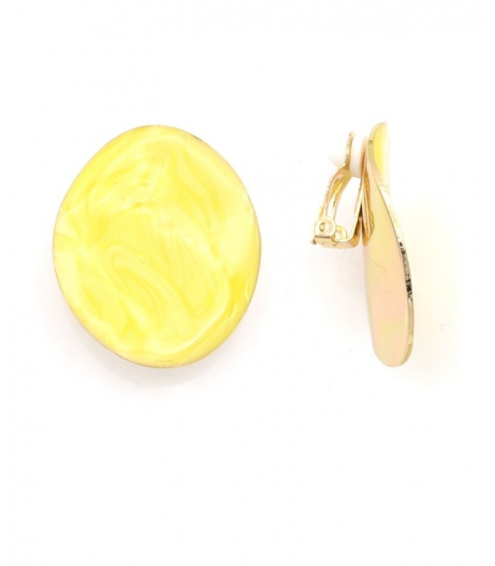 Kunnen oorclips je dag opfleuren? Absoluut. Deze gele oorclips doen denken aan de eerste zonnestralen op een lentedag. Ze vangen het licht, trekken de aandacht en geven je look een frisse, vrolijke touch. Perfect voor wie houdt van kleur en karakter. Deze fashion oorclips laten je stralen zonder dat je er gaatjes voor nodig hebt. Zacht geel met een glanzend randje De ronde vorm en het gemarmerde oppervlak zorgen voor een speels maar stijlvol effect. Combineer ze met wit linnen, denim of een kleurrijke jurk deze statement oorclips passen zich aan jouw stijl aan.