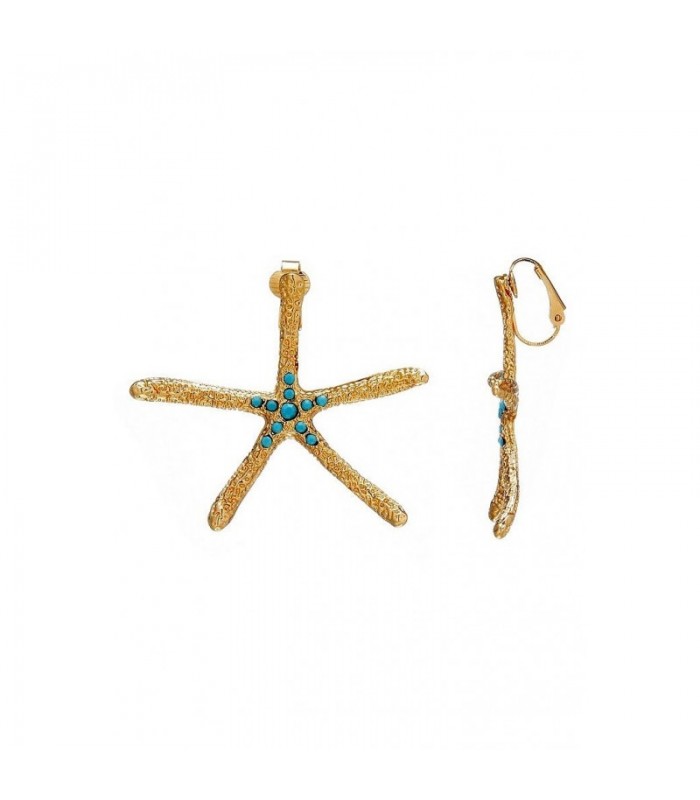 Deze goudkleurige oorclips in de vorm van een zeester zijn ingelegd met schitterende blauwe glaskralen. Het zeesterontwerp straalt een maritieme elegantie uit, ideaal voor zowel casual als formele gelegenheden. De combinatie van het warme goud en de koele blauwe tinten zorgt voor een opvallende en stijlvolle look. Speciaal ontworpen voor wie geen gaatjes heeft, bieden deze oorclips een comfortabele en veilige pasvorm. Gemaakt van hoogwaardige, nikkelvrije materialen, zijn ze zowel duurzaam als huidvriendelijk. Het zeesterdesign met de blauwe glaskralen geeft een unieke uitstraling die bij diverse outfits past. Wil je je sieradencollectie uitbreiden met een uniek en veelzijdig accessoire? Deze zeester oorclips met blauwe glaskralen zijn een must-have voor elke modebewuste vrouw.
