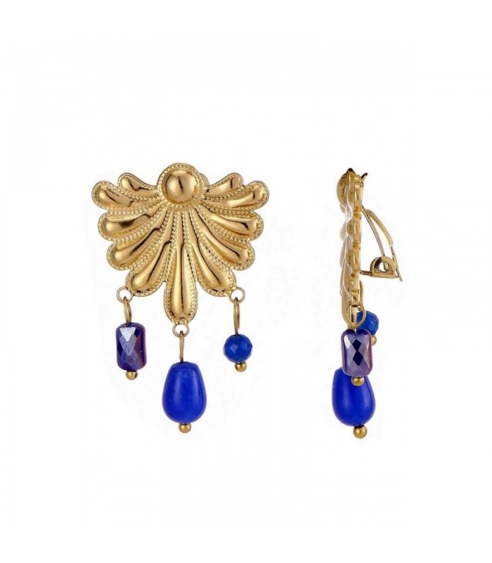 Oorclips goudkleurig met blauwe kraaltjes