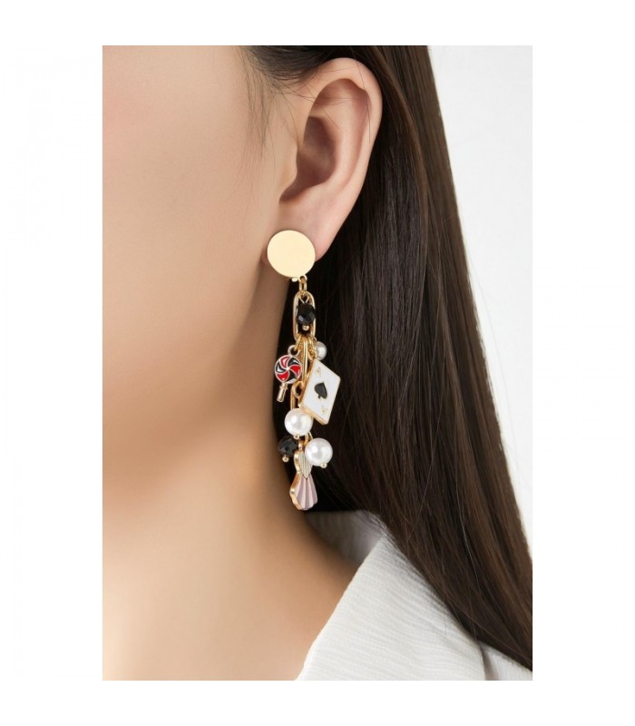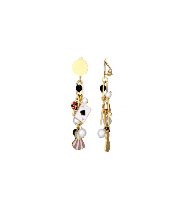 Hoe geef je je outfit meteen karakter? Deze goudkleurige oorclips combineren speelse bedels zoals een kaart, parels, een schelpje en kralen tot een uniek geheel. Het speelse ontwerp trekt de aandacht en geeft je look een creatieve, stijlvolle twist.