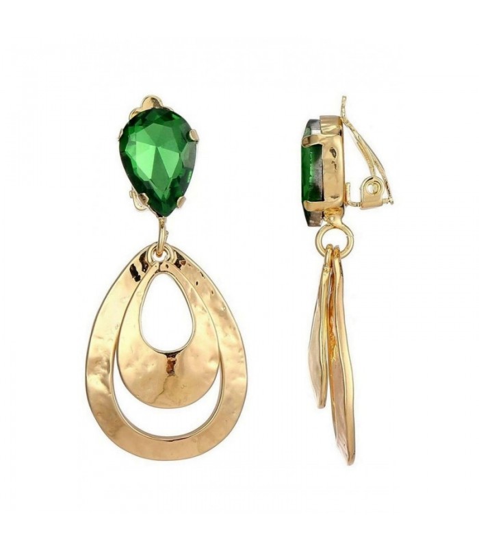 Wat geeft jouw look direct een luxueuze upgrade? Deze oorclips combineren een glanzende goudkleurige compositie met een groene, druppelvormige steen. Het gefacetteerde kristal vangt het licht, terwijl de open vormen zorgen voor een luchtige, moderne uitstraling. Expressief Voor wie geen gaatjes heeft maar wel wil opvallen, De combinatie van goud en smaragdgroen maakt ze ideaal voor feestelijke momenten en elegante iedere styling.