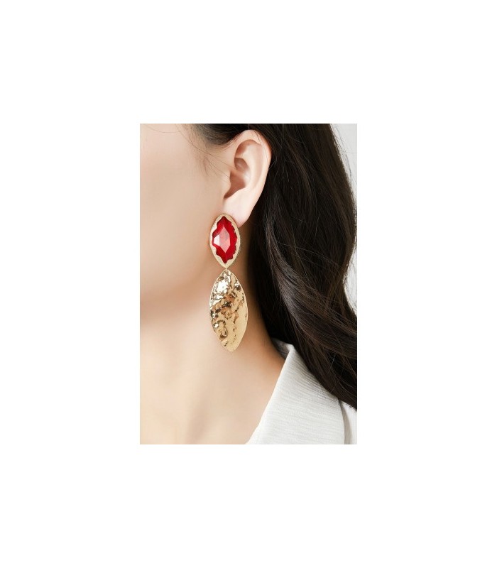 Hoe voeg je in een beweging luxe en kleur toe aan je look? Deze oorclips combineren een diep smaragdgroene facetsteen met een gehamerde, bladvormige hanger in goudkleur. De levendige glans en het unieke lijnenspel zorgen voor een opvallend, maar stijlvol fashion statement. Stijlvol zonder compromisse Deze statement oorbellen zijn ideaal voor oren zonder gaatjes. De combinatie van groene steen en goudkleurige details past perfect binnen de trends. Een krachtige finishing touch voor je outfit.
