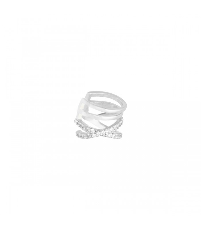 Zilverkleurige earcuff met een kruising en kleine glinsterende steentjes