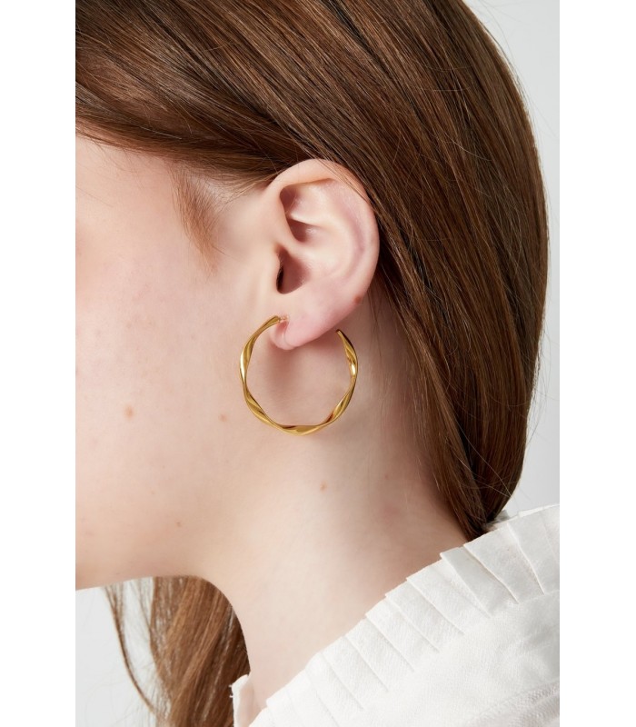 Stijlvol en modern. Zoek je oorclips die opvallen zonder te overdrijven? Deze goudkleurige oorclip met gedraaide vorm geeft een moderne twist aan elke look en voegt direct elegantie toe. Comfort zonder gaatje. Dankzij het clipmechanisme dat van kunststof is draag je deze oorbellen moeiteloos, ook zonder gaatjes. Het lichte design zorgt voor een comfortabele pasvorm.
