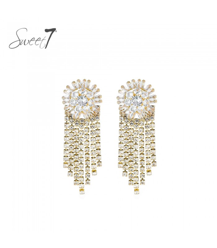 Oorbellen goudkleurig met franjes en heldere strass steentjes