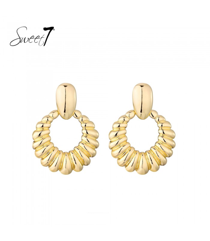 Oorbellen goudkleurig in ronde vorm met geribbelde structuur