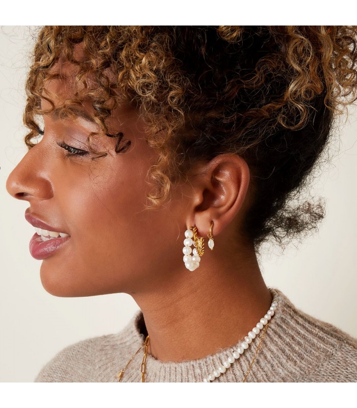 Goudkleurige oorringen met zoetwaterparel. Heb je een feestje, een bruiloft of wil je gewoon jezelf verwennen? Yehwang is een modern, hip en eigentijds sieraden merk. Veel glitter, zilver en goud met vaak een uitstekende afwerking zoals gold plating en gemaakt van roestvast staal. Hierdoor krijgen de oorbellen niet alleen een hippe uitstraling, maar zijn ze ook gemaakt van kwalitatief, hoogwaardig materiaal. De oorbellen zijn nikkelvrij
