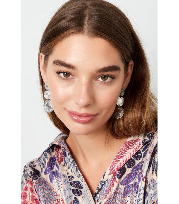 Goudkleurige oorhangers met 3 bewerkte rondjes Ontdek onze elegante goudkleurige oorhangers met 3 prachtig bewerkte rondjes! Deze verfijnde sieraden zijn de perfecte aanvulling op jouw collectie en laten je stralen bij elke gelegenheid. Stijlvol en tijdloos design Onze goudkleurige oorhangers zijn ontworpen met oog voor detail en vakmanschap. De bewerkte rondjes geven een unieke en verfijnde uitstraling aan deze oorsieraden. De tijdloze stijl maakt ze geschikt voor zowel dagelijks gebruik als speciale gelegenheden.