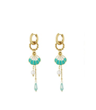 Oorhangers brengen een vleugje strandgevoel naar je look. Deze goudkleurige oorbellen combineren een speelse gekleurde schelp met een pareltje en een glanzend kraaltje. Perfect voor een boho chic uitstraling of een zomerse outfit. De combinatie van kleuren en materialen zorgt voor een opvallende eyecatcher. Bij een casual outfit of een zomerse jurk geven ze net dat beetje extra flair. Dankzij het pareltje en de schelp zijn ze ook stijlvol genoeg voor een beach wedding of festival. Deze oorbellen passen bij elke gelegenheid waar je wilt stralen.