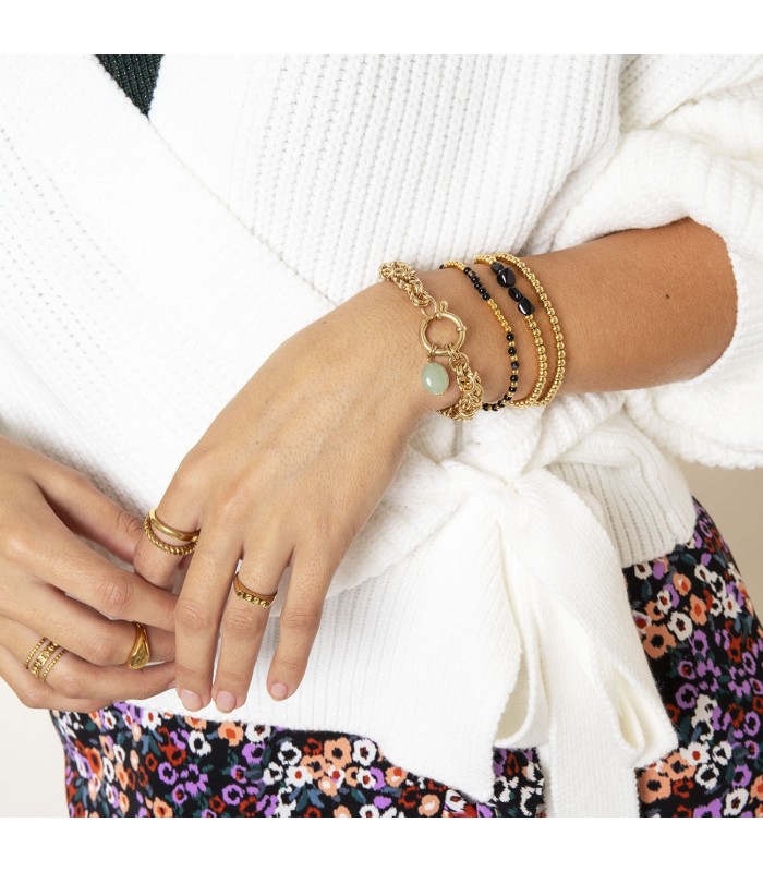 Goudkleurige armband van middelgrote kralen. Heb je een feestje, een bruiloft of wil je gewoon jezelf verwennen? Yehwang is een modern, hip en eigentijds sieraden merk. Veel glitter, zilver en goud met vaak een uitstekende afwerking zoals gold plating of Rhodium en gemaakt van roestvast staal. Hierdoor krijgen de armbanden niet alleen een hippe uitstraling, maar zijn ze ook gemaakt van kwalitatief, hoogwaardig materiaal. De armband is nikkelvrij.