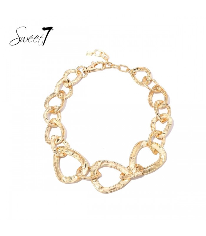 Bold design met speelse elegantie. Zin in een opvallend accessoire dat elke basic outfit transformeert? Deze halsketting met grote schakels in organische vormen heeft een luxe gehamerde afwerking. De glanzende goudkleur maakt dit sieraad tot een echte fashion statement voor zowel dag als avondlooks. Trendy en krachtig in een De combinatie van grove schakels en asymmetrische vormen maakt deze ketting perfect binnen de categorieen statement ketting. De verstelbare sluiting zorgt voor comfort en flexibiliteit in styling. Draag hem solo of combineer met subtiele oorbellen voor balans.