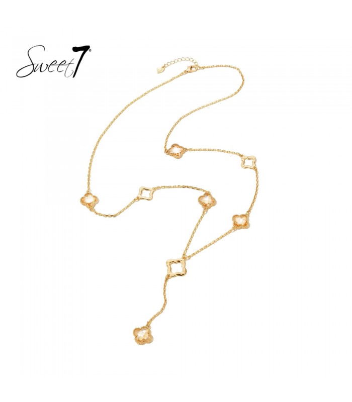Licht, luchtig en verfijnd. Hoe laat je eenvoud toch spreken? Deze halsketting van Sweet7 bewijst dat subtiele details allesbepalend zijn. De goudkleurige ketting is verfraaid met speelse klavervormen die luchtig aanvoelen maar toch opvallen. De perfecte balans tussen minimalistisch en vrouwelijk. Gouden gloed met open details De afwisseling van open en omlijnde klavertjes geeft deze halsketting een luchtige, elegante uitstraling. De zachte glans van het goud zorgt voor een warme touch die moeiteloos te combineren is met elke outfit,van zakelijk tot feestelijk.