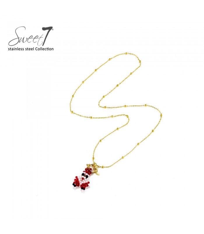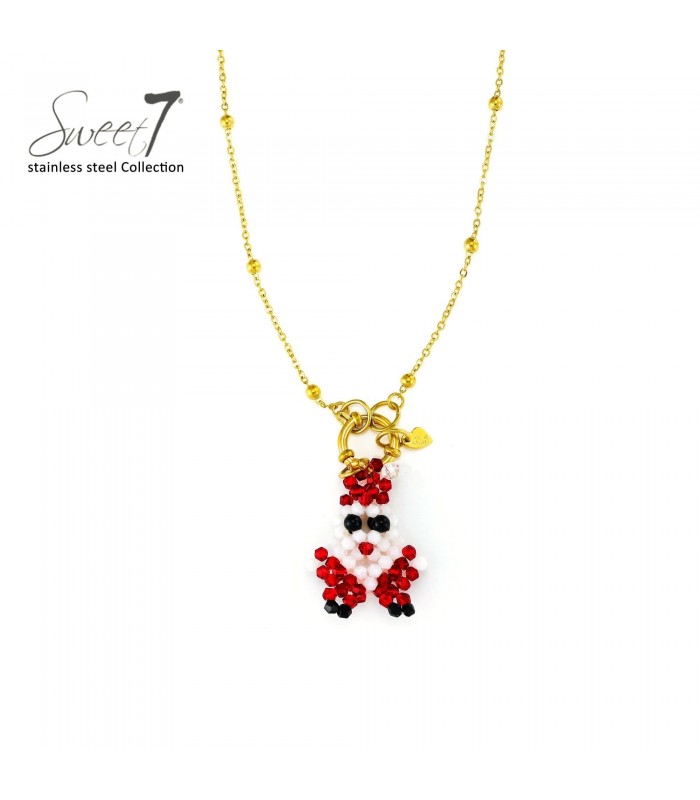 Wil je jouw decemberlook net dat beetje extra geven? Deze kerst ketting van Sweet7 met handgemaakte kerstmanhanger is precies wat je nodig hebt. De kralen in rood, wit en zwart vormen een vrolijk figuurtje dat direct opvalt, zonder te overheersen. Ketting met feestelijke charme De fijne goudkleurige stainless steel ketting met bolaccenten zorgt voor een elegante basis. De hanger voegt een speels detail toe dat perfect past bij elke outfit in de feestdagen. Combineer met andere gouden sieraden voor een stijlvolle kerstcombinatie.