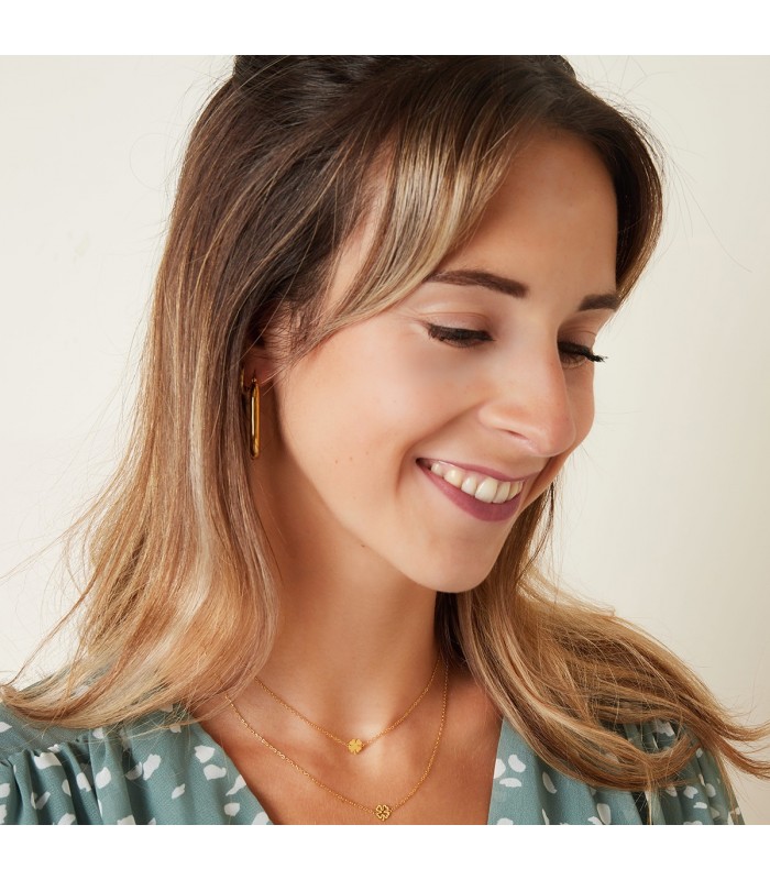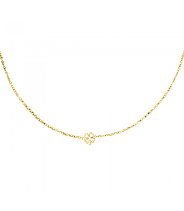 Leuke goudkleurige ketting met een open klaver. Heb je een feestje, een bruiloft of wil je gewoon jezelf verwennen? Yehwang is een modern, hip en eigentijds sieraden merk. Veel glitter, zilver en goud met vaak een uitstekende afwerking zoals gold plating en gemaakt van roestvast staal. Hierdoor krijgen de halskettingen niet alleen een hippe uitstraling, maar zijn ze ook gemaakt van kwalitatief, hoogwaardig materiaal. De ketting is nikkelvrij.