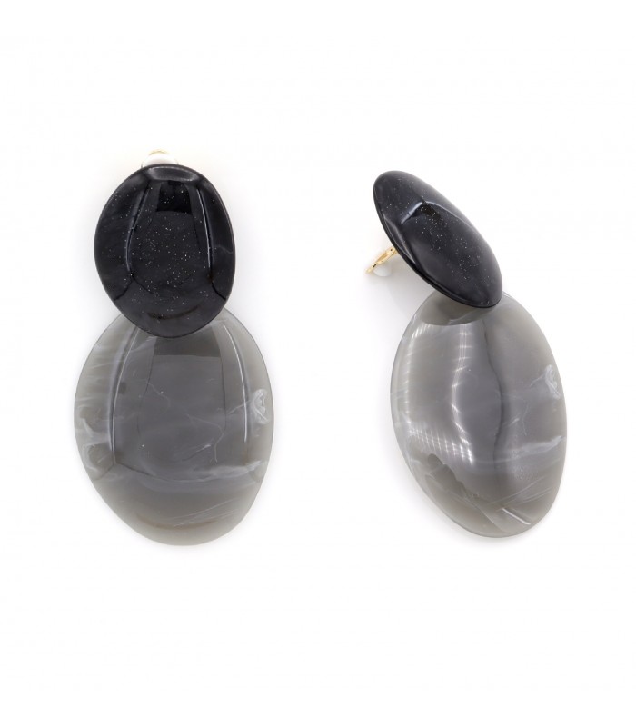 Hoe combineer je tijdloze klasse met een moderne touch? Deze oorclips doen het moeiteloos. De ovale vormen in glanzend zwart en gemarmerd grijs zorgen voor een strakke, elegante uitstraling. Perfect voor een stijlvolle, minimalistische look met impact. Voor elke gelegenheid geschikt Een ideale keuze voor wie houdt van grafische vormen en neutrale tinten. De perfecte balans tussen design en draagbaarheid maakt deze oorbellen onmisbaar in je sieradencollectie.