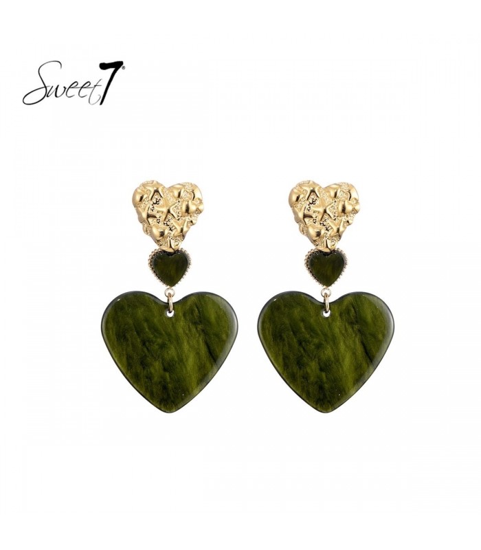 Wil je romantiek combineren met een krachtige uitstraling? Deze oorbellen van Sweet7 hebben een speelse hartvorm in diep mosgroen, aangevuld met een goudkleurige bovenkant vol relief. De mix van structuren en kleuren maakt dit een echte blikvanger. Groen goud ontmoet fashion flair De marmerachtige glans van het hart vangt het licht op een subtiele manier, terwijl het goud voor warmte zorgt. Deze oorbellen passen perfect bij natuurlijke tinten en herfstkleuren en zijn ideaal voor liefhebbers van statement oorbellen en hartvormige sieraden.