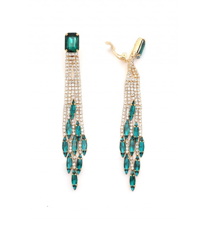 Sprankelend design met luxe uitstraling. Zijn deze oorclips een statement voor een avondlook? Absoluut. De combinatie van smaragdgroene stenen met goudkleurige kettingdetails zorgt voor een elegante en opvallende uitstraling. Perfect voor feestelijke gelegenheden of een chique diner. Comfortabel te dragen De oorclips zijn ontworpen voor comfort zonder gaatjes. Dankzij het verfijnde ontwerp zijn deze fashion oorbellen ook een stijlvolle keuze voor dagelijks gebruik.