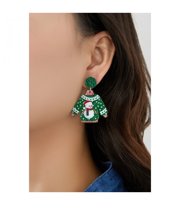 Feestelijke oorbellen met kersttrui-design in groen.
