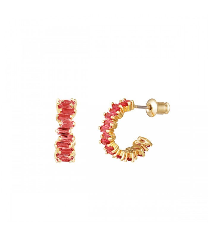 Goudkleurige oorhangers met oranje zirconia steentjes. Heb je een feestje, een bruiloft of wil je gewoon jezelf verwennen? Yehwang is een modern, hip en eigentijds sieraden merk. Veel glitter, zilver en goud met vaak een uitstekende afwerking zoals gold plating en gemaakt van roestvast staal. Hierdoor krijgen de oorbellen niet alleen een hippe uitstraling, maar zijn ze ook gemaakt van kwalitatief, hoogwaardig materiaal. De oorbellen zijn nikkelvrij en worden voorzien van stoppertjes, zodat je ze comfortabel kan dragen en niet uit de oren glijden.