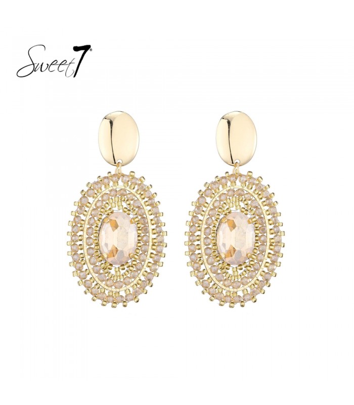Oorbellen met champagnekleurige steen en fijne gouden details van Sweet7.