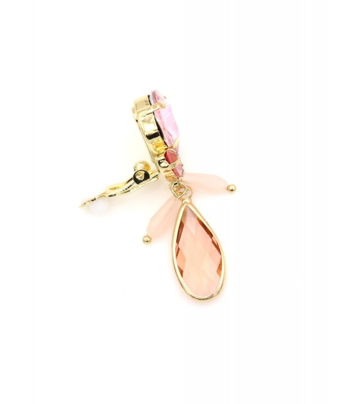Wil je een elegante touch zonder in te leveren op kleur? Deze oorclip combineert zachte roze tinten met een vleugje abrikoos in een verfijnde druppelvorm. De mix van glanzende glasstenen en goudkleurige details geeft je look direct een vrouwelijke upgrade. Perfect bij pastel fashion. Comfort zonder compromissen Deze oorclip is ideaal voor wie geen gaatjes heeft maar wel stijl wil. De rubbertjes zorgen voor draagcomfort. De oorbel voelt licht aan maar maakt toch een duidelijk fashion statement, subtiel en chic tegelijk.