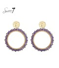 Paarse oorhangers met zilverkleurige kraaltjes.