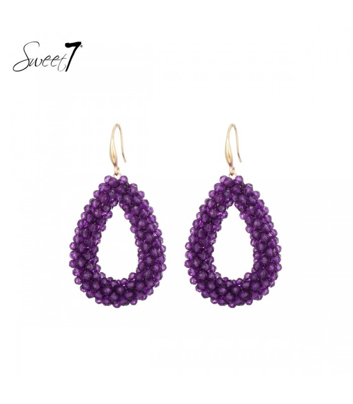 Paarse glas kralen oorhangers. Ben je op zoek naar oorhangers die je look een kleurrijke en trendy twist geven? Kijk dan eens naar deze prachtige paarse glas kralen oorhangers van het merk Sweet7. Deze oorhangers zijn ontworpen om op te vallen en je een stijlvolle uitstraling te geven. De oorhangers zijn gemaakt van hoogwaardige materialen en zijn voorzien van mooie paarse glas kralen. De levendige kleur en de glanzende afwerking geven de oorhangers een trendy en eigentijdse uitstraling. Ze zijn perfect om te dragen bij zowel casual als formele gelegenheden. Met hun opvallende design voegen deze paarse glas kralen oorhangers een vleugje kleur en glamour toe aan elke outfit. Of je nu een simpele jeans en T-shirt draagt of een feestelijke jurk, deze oorhangers zullen je look compleet maken. Koop nu deze prachtige paarse glas kralen oorhangers van Sweet7 en geef je sieradencollectie een trendy upgrade. Ze zijn ook een geweldig cadeau-idee voor vrienden, familie of speciale gelegenheden.
