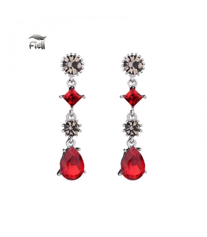 Zilverkleurige oorbellen met hangende rode steentjes