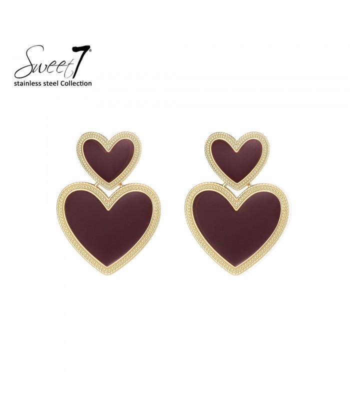 Rode harten oorbellen met een bewerkte goudkleurige rand