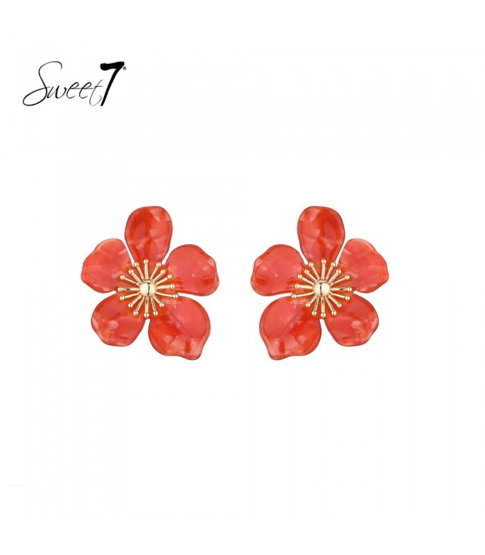 Zomerse charme in bloei. Hoe breng je kleur en karakter samen in een oorbel? Deze rode oorbellen van Sweet7 vangen het speelse gevoel van een zonovergoten dag in een bloemvormig design. De warme tinten stralen energie uit, terwijl het gouden hart een vleugje luxe toevoegt. Ideaal voor festivals, vakanties of een casual chique look.