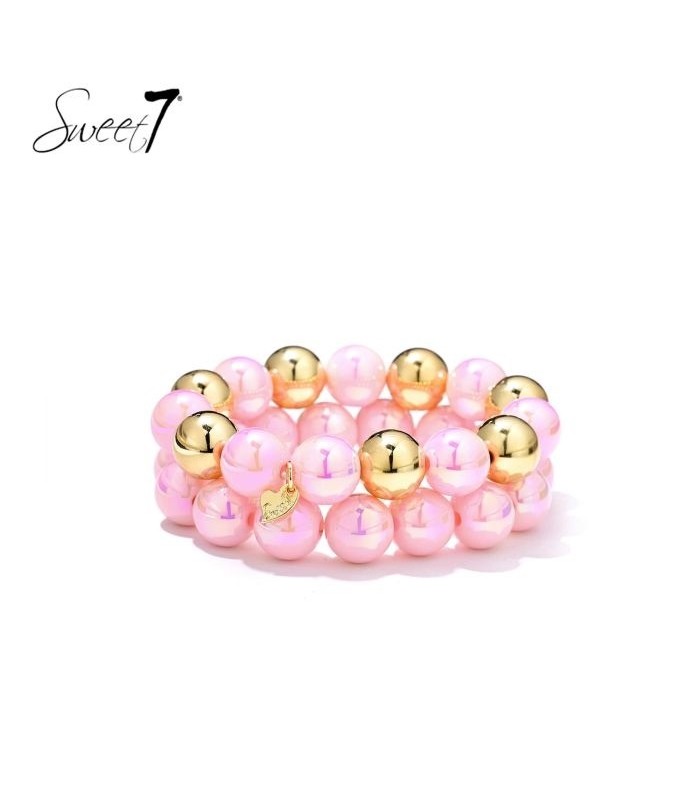 Armband met roze kralen set. Kan een armband tegelijk speels en stijlvol zijn? Deze armband set met roze kralen bewijst het direct. De glanzende roze kralen geven deze kralen armband een zachte, trendy uitstraling. De goudkleurige kralen zorgen voor een luxe fashion accent dat meteen opvalt.