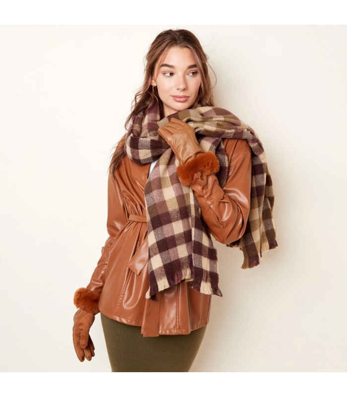 Ben je op zoek naar een sjaal die past bij iedere outfit? Dan is deze sjaal perfect voor het komende winter seizoen. Niet alleen de sjaal zelf is erg warm maar ook de verschillende kleuren namelijk bruin beige en groen. Het materiaal waar de sjaal van gemaakt is is acryl. Dit maakt de sjaal niet alleen warm maar laat het ook aanvoelen als een fijne stof om te dragen. Het patroon van de sjaal is geblokt en heeft een afmeting van 2 meter x 80 cm. Lekker groot en perfect om lekker om je heen te slaan tijdens een middagje terrassen met een warm drankje.