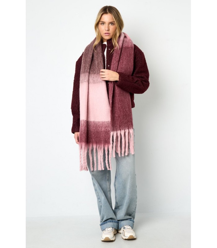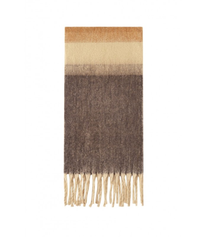 Trendy kleurverloop en franjes De zachte kleurblokken sluiten moeiteloos aan bij een neutrale of aardetint look. De lange franjes zorgen voor een speels effect, terwijl de oversized pasvorm warmte biedt. Ideaal voor zowel casual als geklede outfits. Deze winteraccessoire maakt elke outfit compleet.