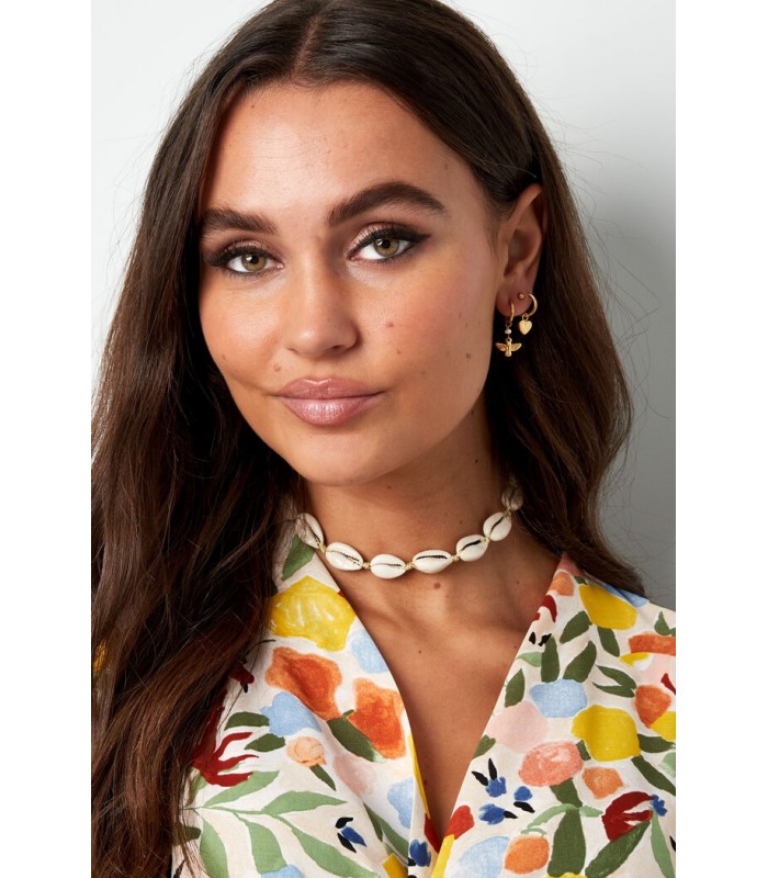 Schitterende Goudkleurige Korte Halsketting met Kleine Schelpen - Voeg Een Vleugje Zomer Toe aan Jouw Stijl! Stralend en stijlvol: ontdek onze prachtige goudkleurige korte halsketting met kleine schelpen. Deze betoverende sieraden zijn de perfecte manier om een vleugje zomerse schoonheid aan jouw look toe te voegen. Zonnige Goudtint met Delicate Schelpaccenten Deze halsketting is ontworpen met aandacht voor detail en zorgvuldig geselecteerde materialen. De goudkleurige ketting straalt warmte en elegantie uit, terwijl de kleine schelpen een speels en natuurlijk element toevoegen. Draag deze ketting om een alledaagse outfit te verlevendigen of om je beachy look compleet te maken. Hoe Kies Je de Juiste Combinaties voor Jouw Goudkleurige Korte Halsketting? Vraag: Welke outfits passen het beste bij deze goudkleurige korte halsketting met schelpen? Antwoord: Deze veelzijdige ketting past perfect bij zowel casual als meer geklede looks. Combineer hem met een zomerse jurk en sandalen voor een ontspannen vibe, of draag hem als een subtiel statementstuk bij een effen blouse en jeans. De goudtint en schelpaccenten geven je outfit net dat beetje extra flair.