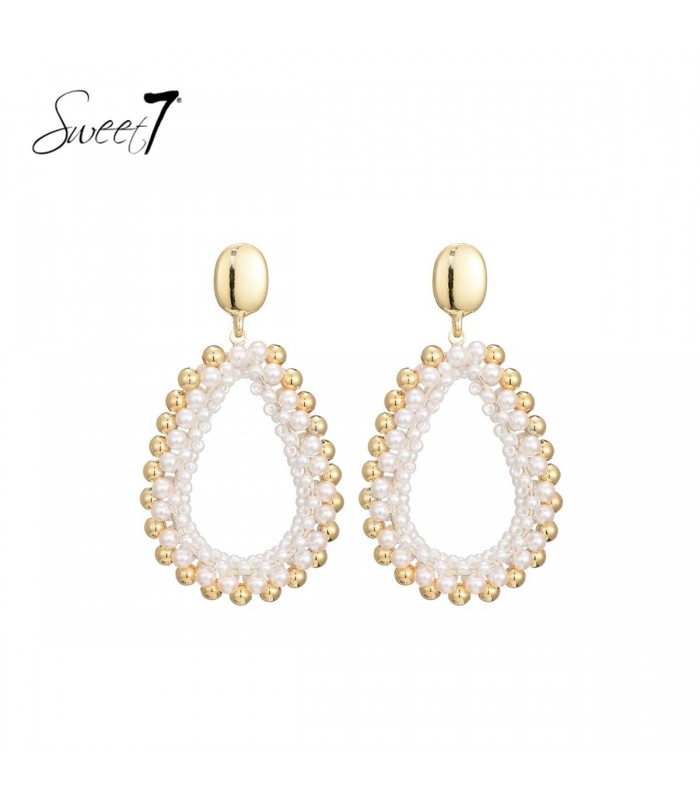 Oorbellen wit met parel kralen en goudkleurige bolletjes rondom