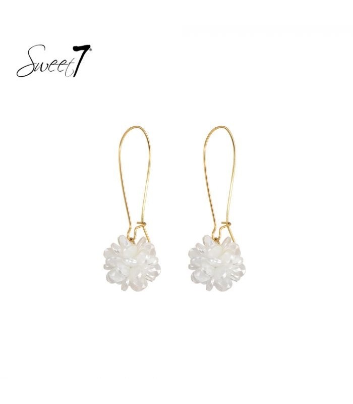 Wil je een oorbel die subtiel schittert zonder te overheersen? Deze oorbellen met een bloemhanger en goudkleurige draadhaak zijn perfect in balans. De transparant witte bloemblaadjes vangen het licht prachtig op en geven je look een verfijnde, vrouwelijke touch.