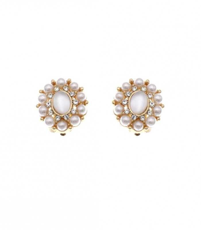Goudkleurige oorclips met pareltjes en strass steentjes