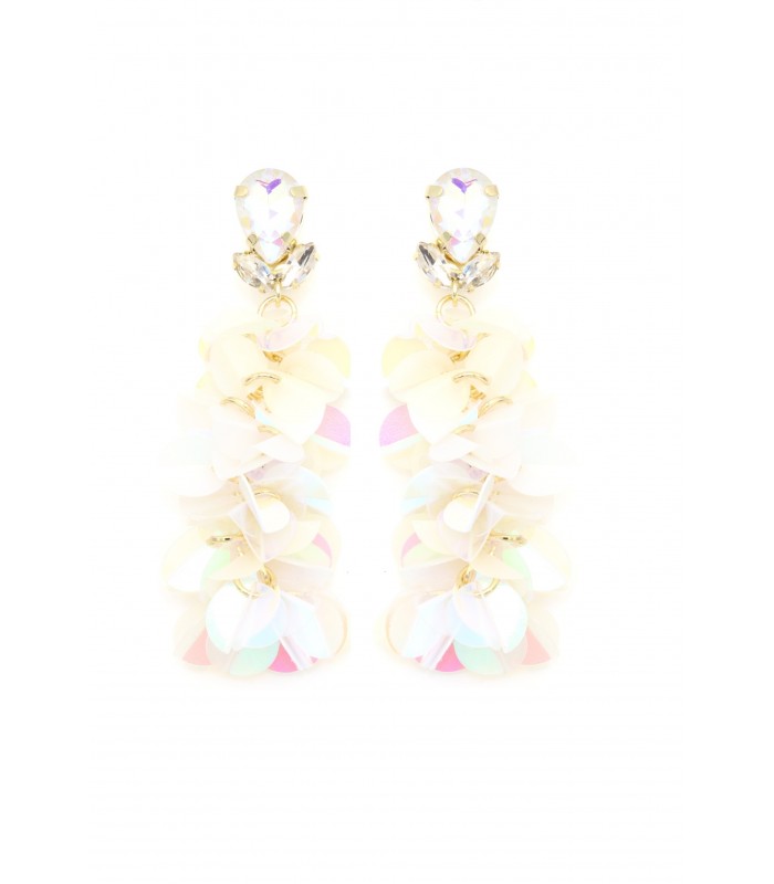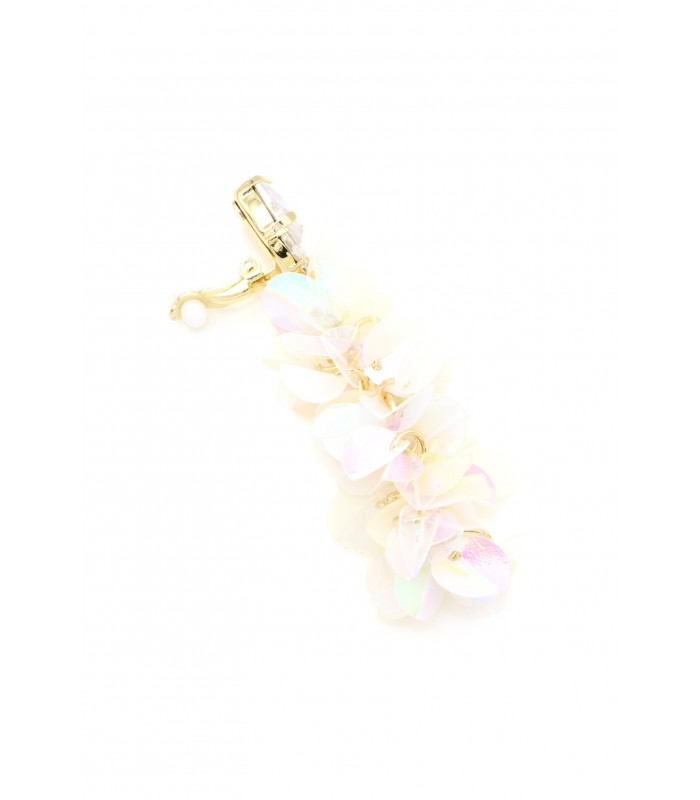 Hoe combineer je subtiele glans met opvallende flair? Deze witte oorclips doen het moeiteloos. De iriserende schijfjes vangen elk licht en reflecteren pastelkleuren die je look doen oplichten. Perfect voor bruiloften, feestjes of een stijlvolle avond uit. De kristalvormige steen aan de bovenzijde geeft net dat extra beetje sprankel dat je outfit compleet maakt. Trendy en comfortabel Deze fashion oorclips zijn niet alleen een visueel statement, maar zitten ook prettig zonder gaatjes. De zachte rubbertjes zorgen voor een fijne pasvorm. Voeg ze toe aan je sieradencollectie voor een unieke touch die opvalt en past bij elke gelegenheid.